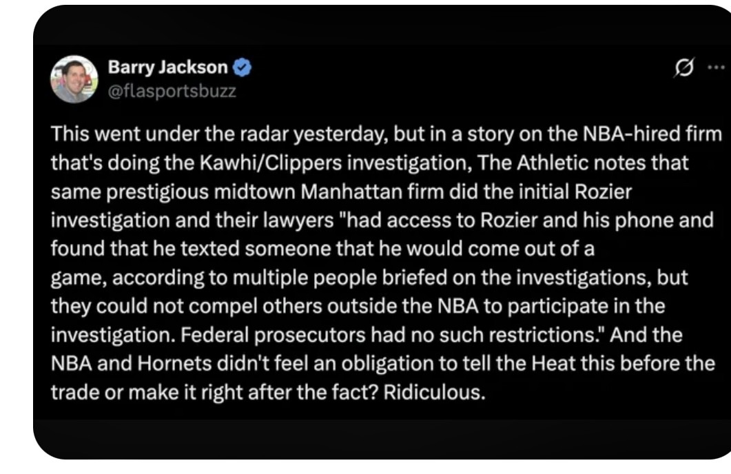 Miami would not be in this situation if Rozier, Charlotte or Adam Silver (the NBA) had disclosed the allegations against Rozier and ongoing FBI investigation. They didn’t. Miami was defrauded and now has legal recourse against all three. PERIOD!